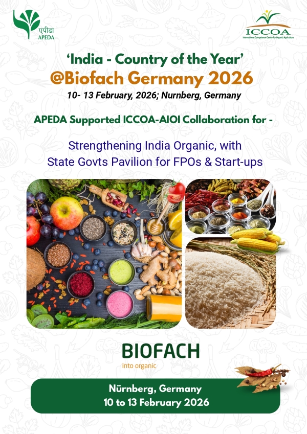 In India, organic movement started in the early nineties with organic tea plantation taking lead. India has a lot of potential to produce all varieties of organic products due to its various agro climatic regions. ICCOA has provided a platform for networking among players in the organic sector since 2005. We wish them all success.
